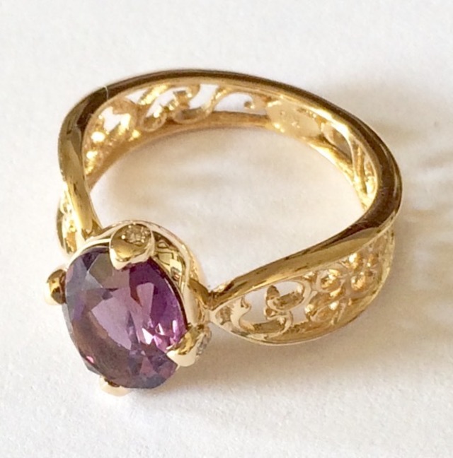 K18YG アメジスト ダイヤモンド サイズ11 ネムリヒメシリーズのリングです。 『眠れる森の美女』のお話からインスピレーションをうけて、唐草に包まれたロマンティックなリングが生まれました。 どんな道でも、自らの運命を切り拓き花咲く意志をもつあなたへ