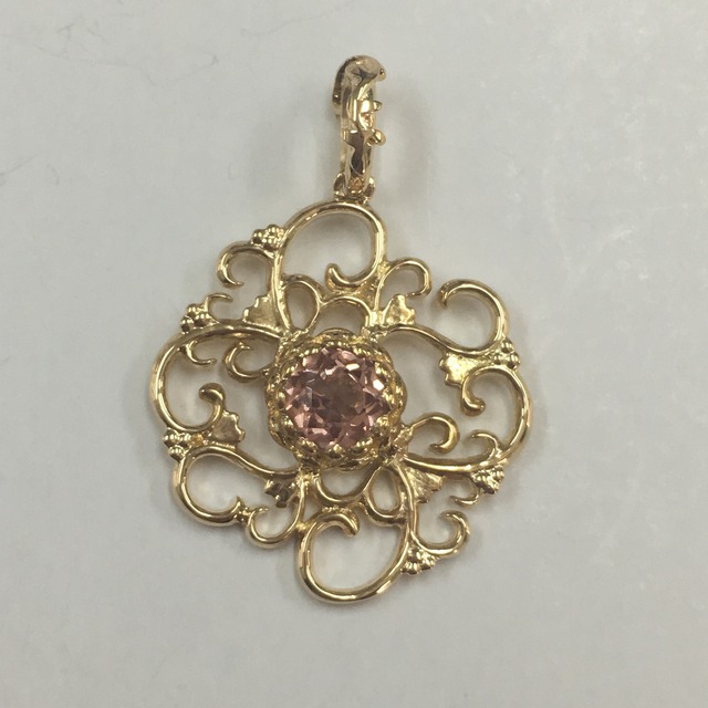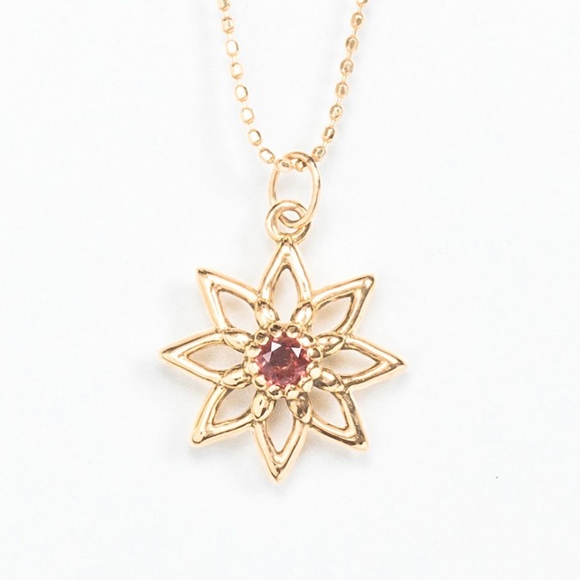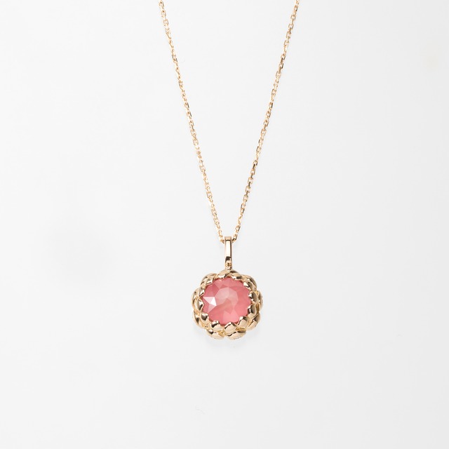 K18YG ロードクロサイト 蓮は泥の中から生まれながら、凛とした美しい花を咲かせます。それゆえ古くから清らかさや神聖さの象徴とされてきました。持ち主の持つ『清らかな心』を守ってほしい、そんな想いを込めて。 蕾の中から顔を覗かせたような宝石は蓮花の内側から