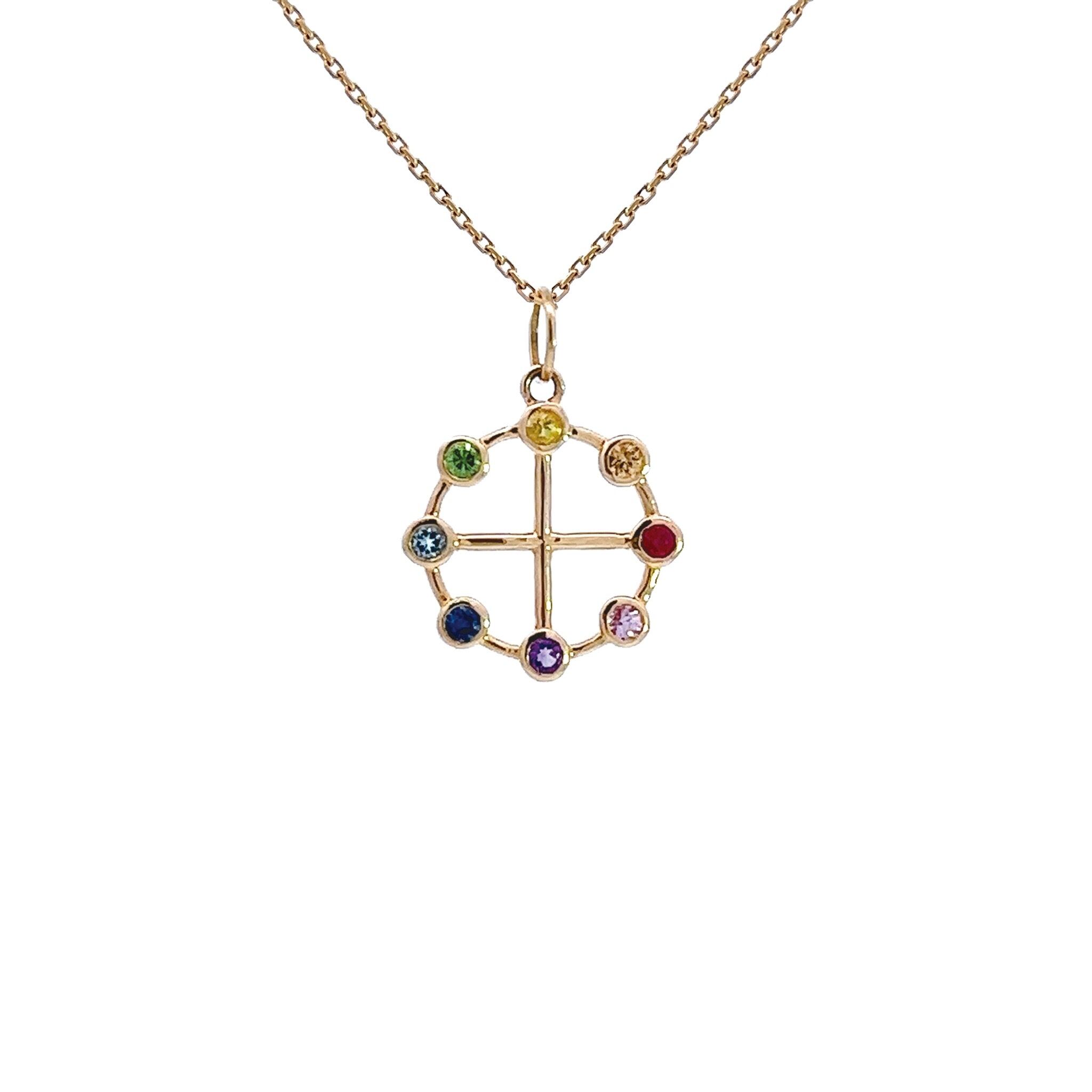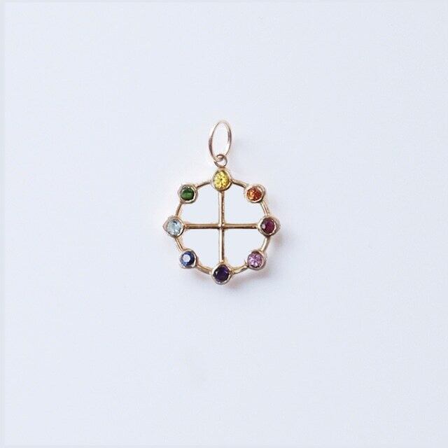 ヤタノカガミペンダントトップ13mm10KYGチャクラカラー
