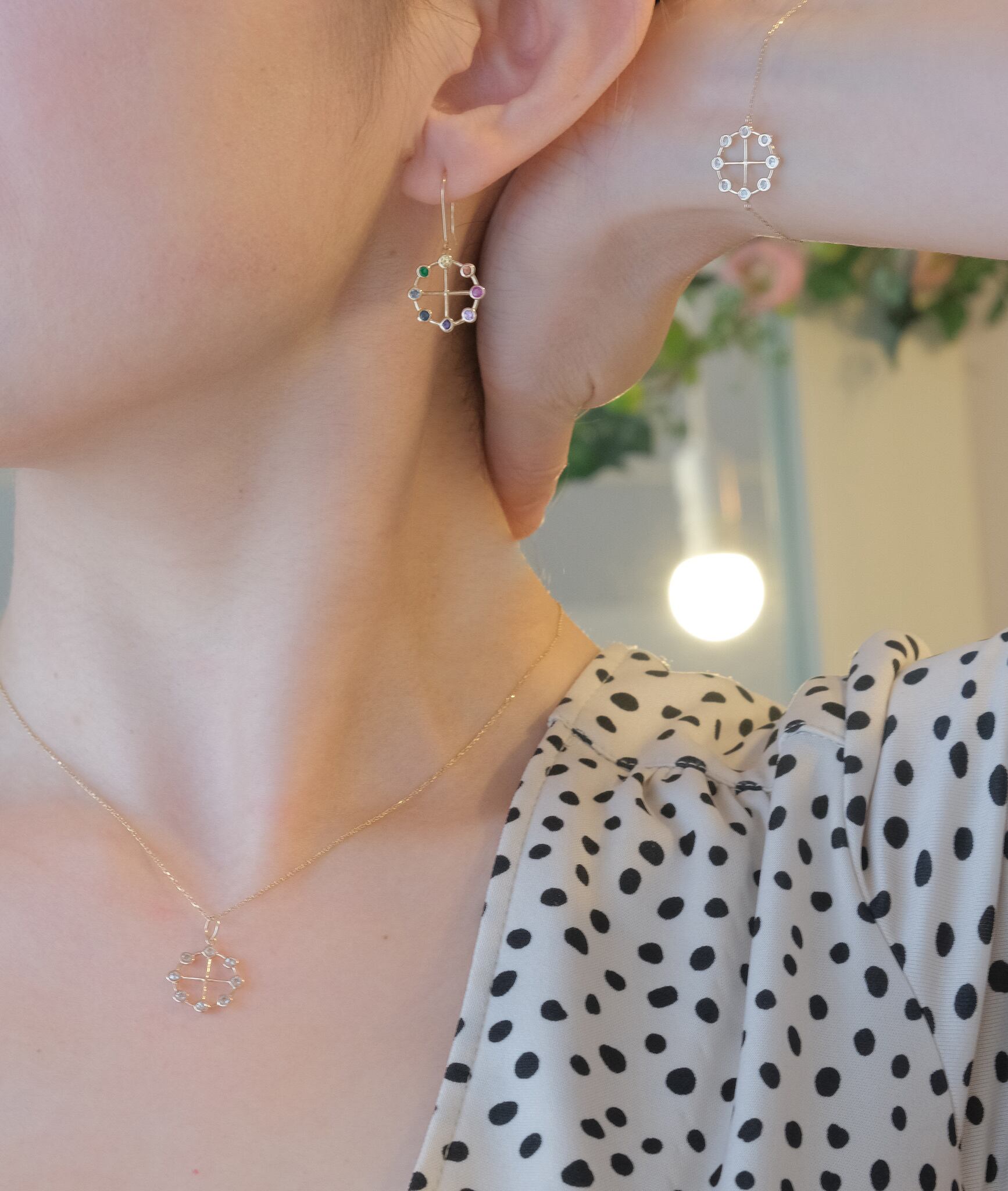 【受注製作】ヤタノカガミピアス13mmチャクラカラー10KYG